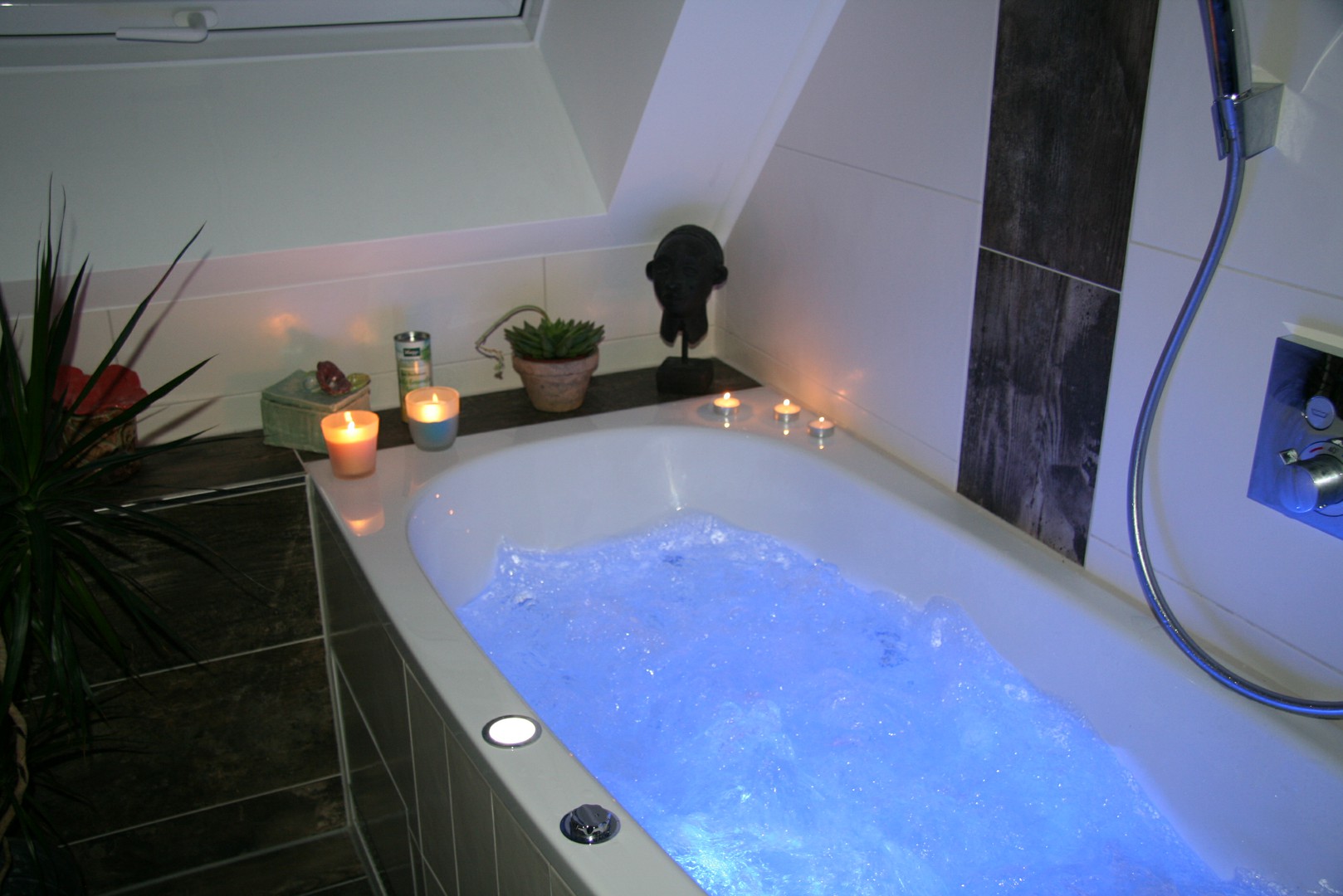 - Bad / WC: Badetücher, Bademäntel, Badewanne m. Massagedüsen